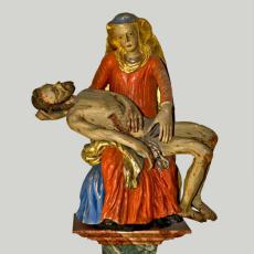 Der ländliche, barocke Altaraufsatz, um 1700, besteht aus zwei gewundenen Freisäulen und zwei Pilastern, vor denen die Figuren des hl. Petrus und des hl. Johannes Evangelist stehen. Das darüber gelegte Gebälk stösst schräg über die Säulen hinaus. Seitlich wird der Altar mit Akanthusranken abgeschlossen. Die Pietà auf dem neuen Sockel an der Seitenwand wird dem Schnitzer des Altars zugeschrieben.