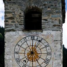Selbständiger Bauteil. Beim Zifferblatt der Turmuhr erkennt man die Jahreszahl 1665.