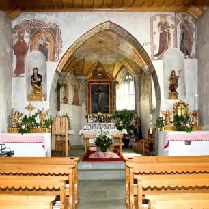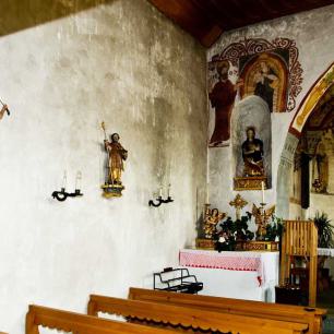 Gotischer Chor mit Fresken des italienischen Malers Giovanni Battista Macolino aus Val San Giacomo.