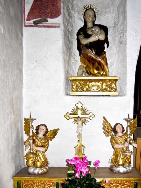 Hinweis zu Poeschel: Als Standort der Predella des gotischen Altars wird dort noch die Kapelle der Schmerzensreichen Mutter angegeben. Im Zuge der Renovierung der Pfarrkirche (1977-1982) wurde sie hierher gebracht.