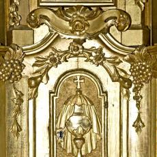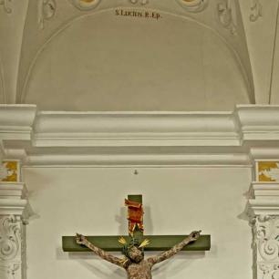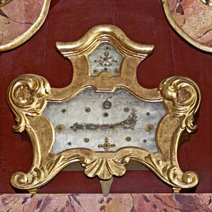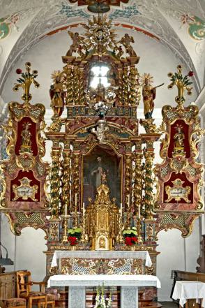 Der Hochaltar der ersten Kirche fand im Neubau des 18. Jahrhunderts keinen Platz. Der neue Hochaltar ist hier oben ausführlich dargestellt und dokumentiert.
