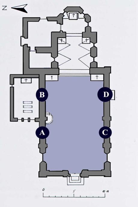Links - Nordseite 2. Fenster & Zugang zur Tageskapelle (A & B):