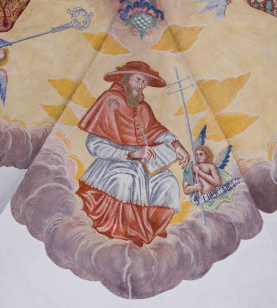 Der Überlieferung zufolge soll Hieronymus einem Löwen einen Dorn aus der Pranke gezogen haben. Dieser wurde darauf zahm und ein treu ergebener Gefährte. Zu den Attributen des hl. Hieronymus gehört daher neben der Bibel und dem scharlachroten Kardinalshut oft auch der Löwe. (Wikipedia)