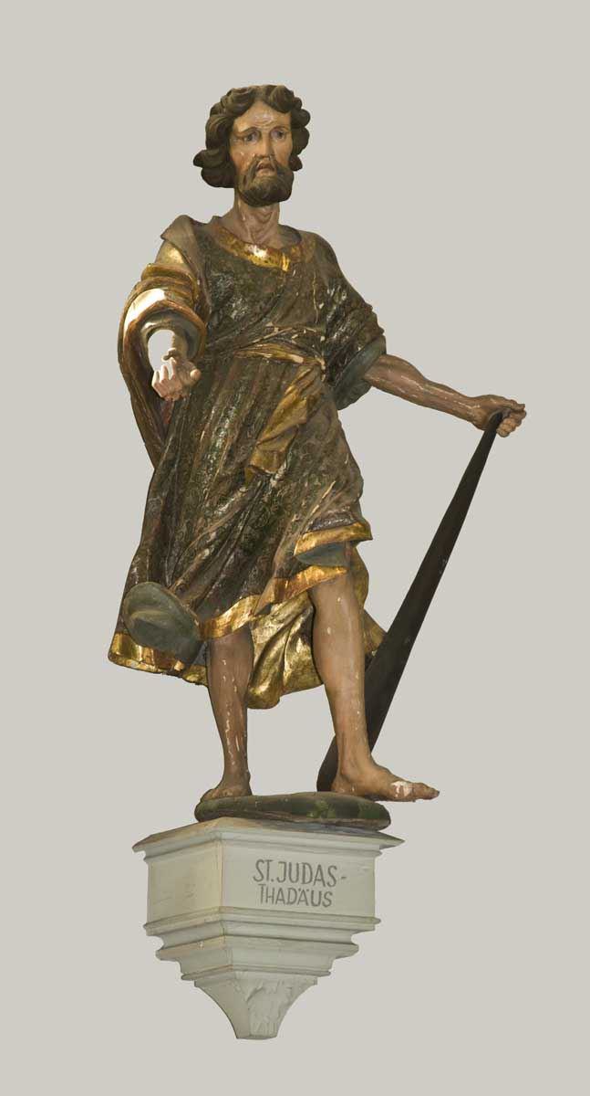 Judas soll in Vorderasien (Tur Abdin) und Phönizien gewirkt haben. Hier soll er erstochen, enthauptet oder mit einer Keule erschlagen worden sein. In der christlichen Kunst ist er daher oft mit einer Hellebarde, Steinen, einer Axt oder einer Keule zu sehen. (Wikipedia)