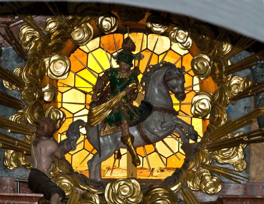 Altar-Aufsatz: Martin auf dem Pferd, den Mantel mit dem Schwert teilend