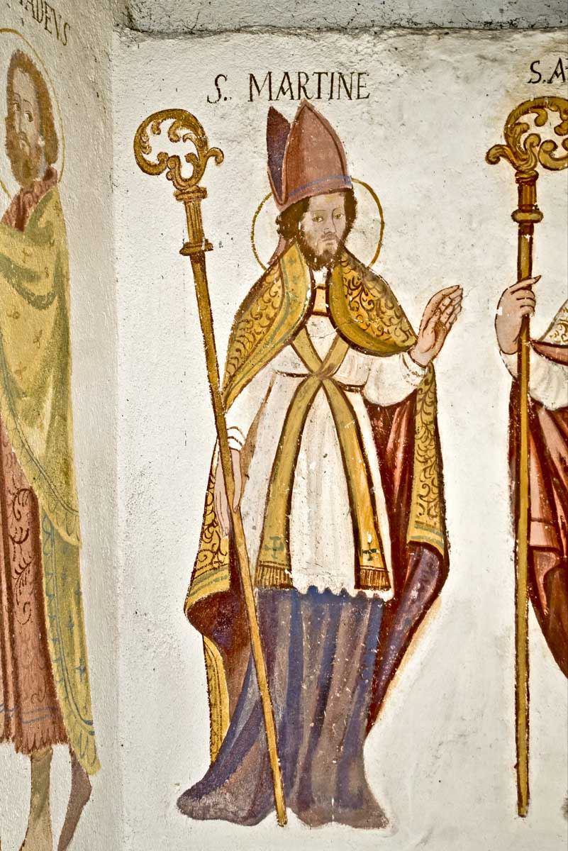 Attribute: als römischer Reiter, Bettler, Mantel, Gans