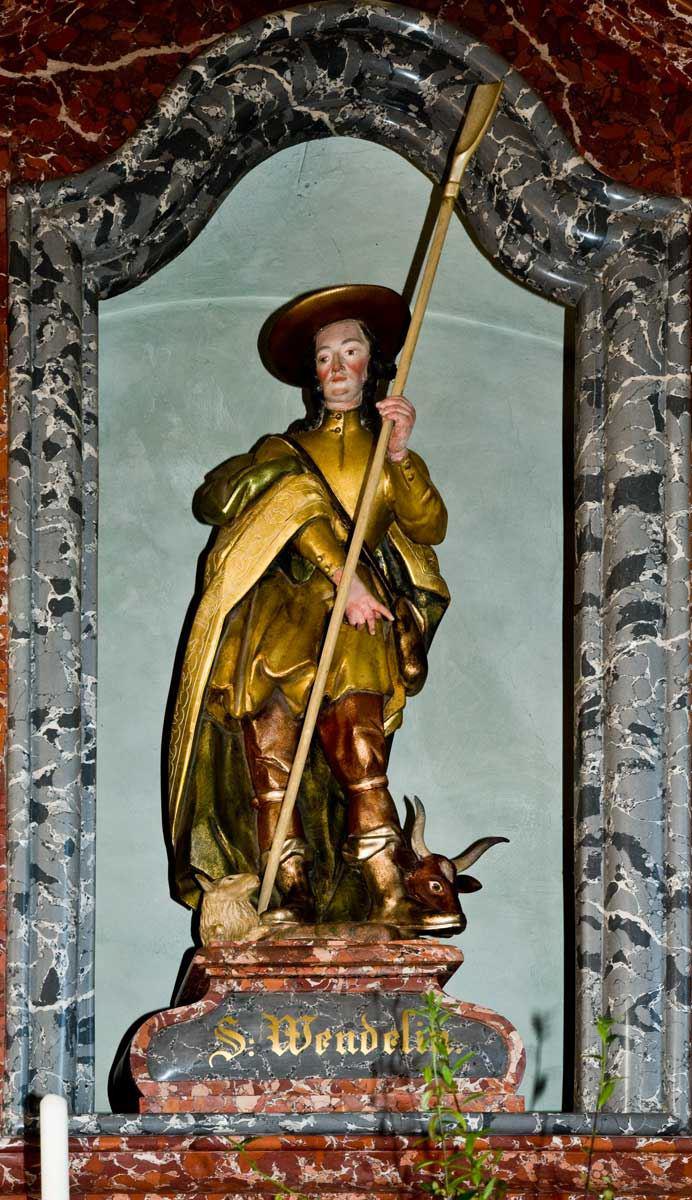 Attribute: als Hirte, mit Schafen und Schweinen, als Pilger, mit Keule