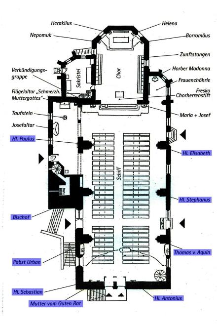 In einer Seitenkapelle ist die "Horber Madonna" (Spätgotik) aufgestellt, die in viele kunstgeschichtlichen Büchern aufgenommen wurde und als sehr schönes Beispiel der sogenannten "Schönen Madonnen" gilt. "