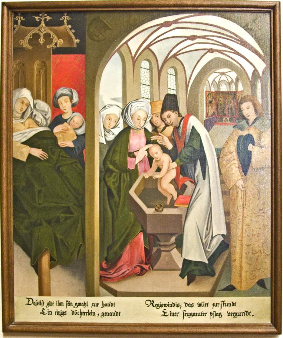 Regiswindis (geb. 832) war die Tochter des Grafen Ernst vom Nordgau und seiner Frau Friedburga, einer Tochter Kaiser Ludwigs des Frommen. Regiswindis wurde im Alter von sieben Jahren von ihrer Amme ermordet und in den Neckar geworfen; drei Tage später wurde ihr Leichnam unversehrt am Ufer gefunden. Auf grund dieses "Wunders" wurde sie heilig gesprochen und lange Zeit verehrt.