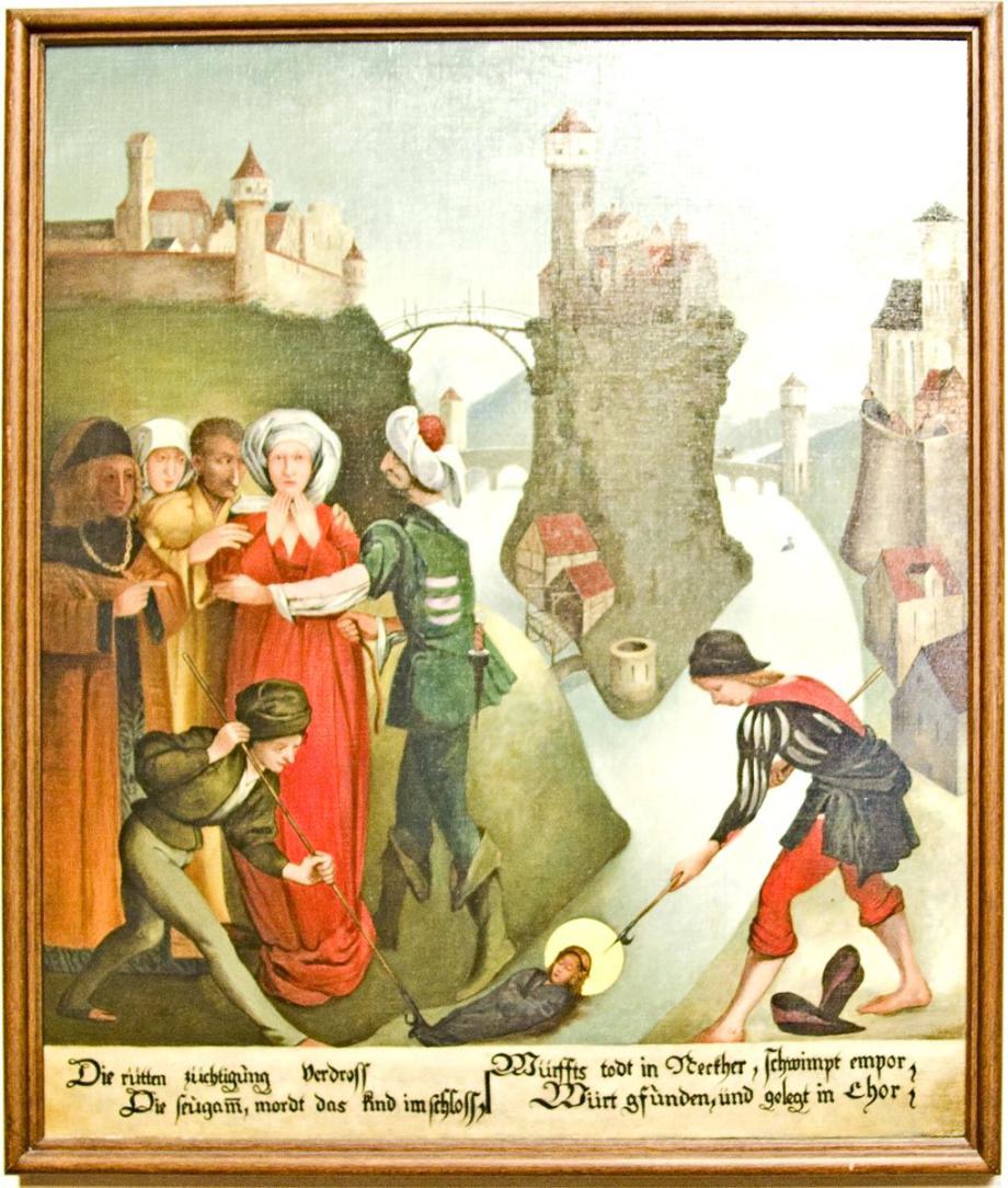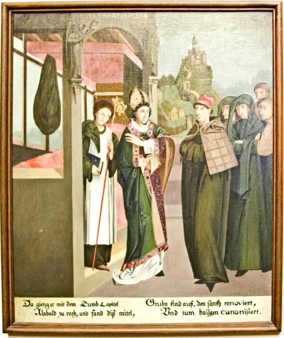 Der Bau der ehemaligen Wallfahrtskirche zu Ehren der Ortsheiligen Regiswindis wurde 1227 als dreischiffige Basilika begonnen.