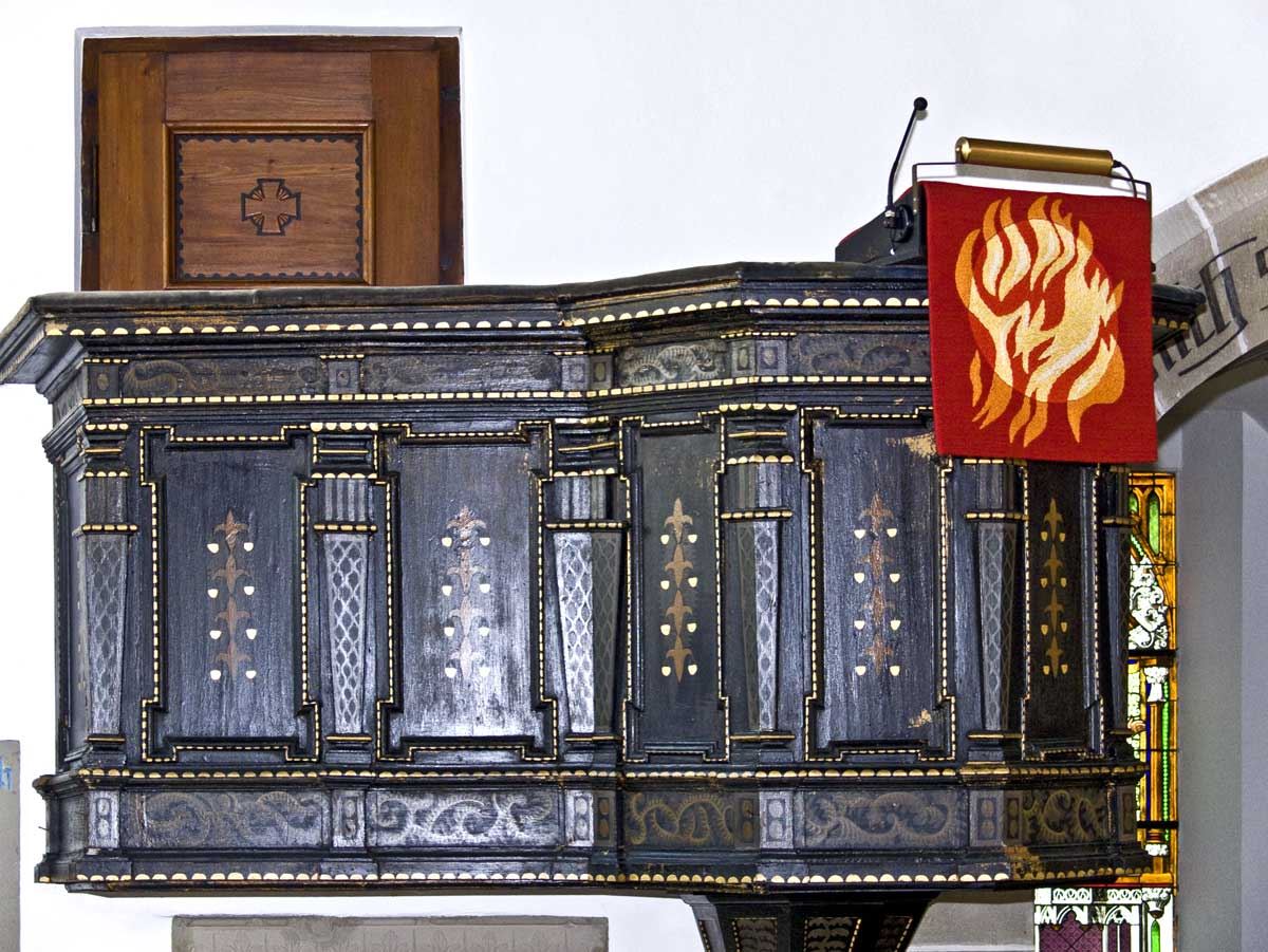 An der Südseite zur Straße hin ist das Grabmal von Agatha Thumb geb. von Kaltental, die 1597 im Alter von 60 Jahren starb. (Davon zeugt die Tafel unter der Kanzel.)