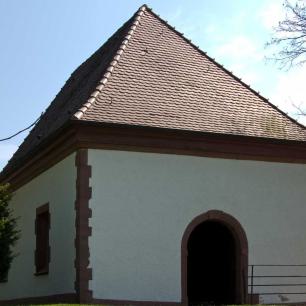 "Die erste Kapelle datiert auf das Jahr 1685. Sie litt aber in den Kriegswirren und war bald baufällig. Deshalb wurde 1722 ein Neubau errichtet und der unbefleckten Empfängnis Mariae geweiht. Der nur noch zum Teil erhaltene Deckenstuck und die Altardekoration stammen aus der Zeit der Erbauung."