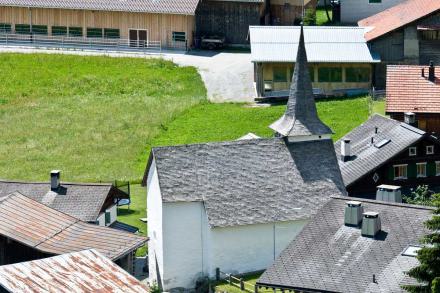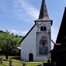 Die Kapelle St. Jakob (rät. Sogn Giacun): Kapelle und Holzdecke wurden 1514 erbaut. Die Aussenmalereien aus dem Jahre 1515 stammen von den oberitalienischen Brüdern Soregno.