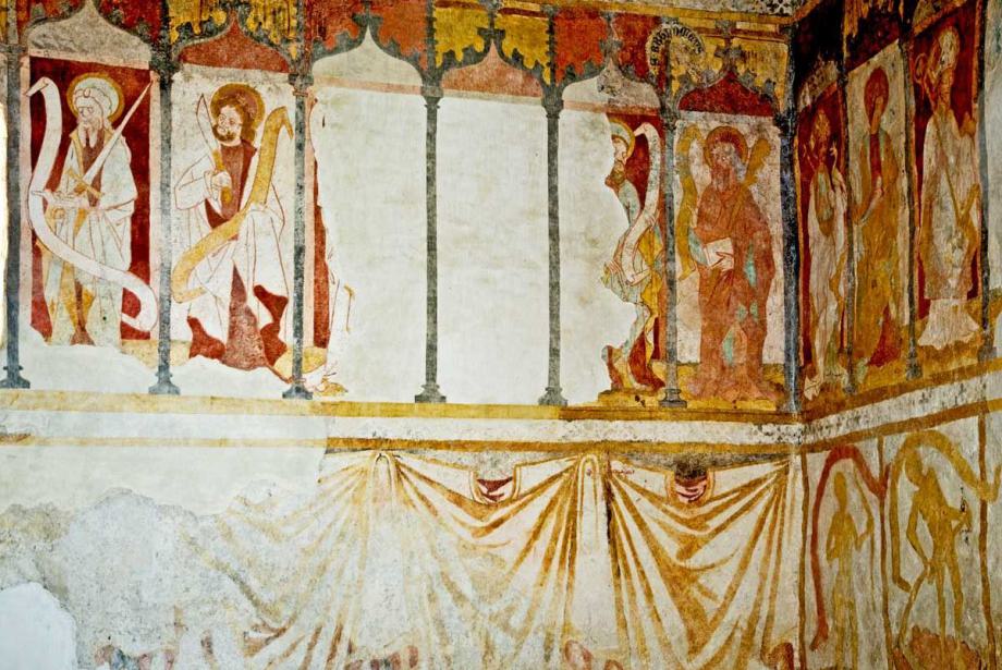 Eine Darstellung der 12 Apostel mit dem Glaubensbekanntnis ist auch zu finden in der Kirche St. Germanus in Stuttgart-Untertürkheim