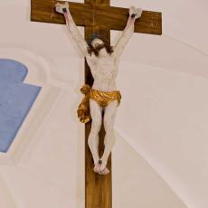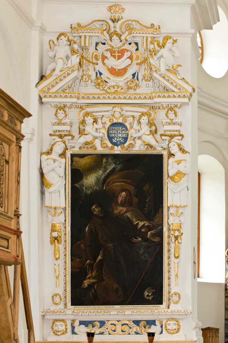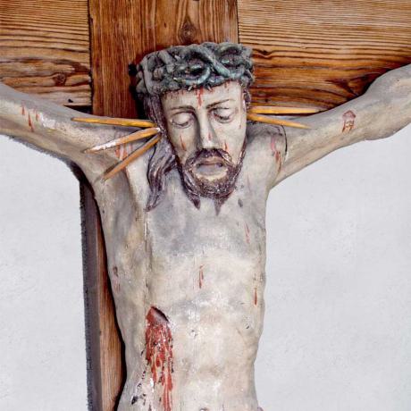 Zwischen der Placidus-Kirche und dem Kloster steht auf der rechten Straßenseite ein Crucifix in einer Kapelle: