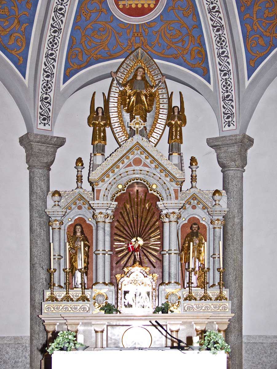 Kurz darauf wurde mit dem Bau der dreischiffigen Kirche im romanisierenden Stil begonnen. Die Pläne stammten vom St. Galler Architekten Hardegger. Am 16. September 1900 weihte der Churer Bischof Johannes Fidelis Battaglia das Gotteshaus feierlich ein.