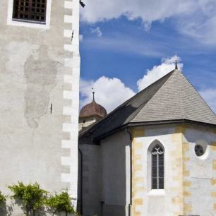 Die Kirche wurde 1934 einer Renovierung und 1986 90 letztmals einer Restauration unterzogen. Der Kirchturm mit Walmdach steht getrennt von der Kirche. Er dient seit 1438 als Glockenturm und wurde zeitweise auch als burgartiger Wehrturm genutzt. Es wird vermutet, dass der Turm mit der verschwundenen Burg Brinegg identisch ist. Das Geläut besteht aus fünf Glocken und stammt aus dem Jahr 1932.