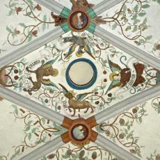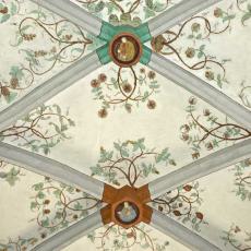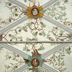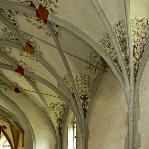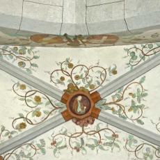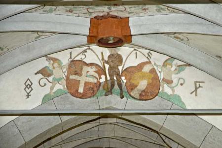 Die Rauten im Scheitel sowie die unteren Gewölbezwickel sind mit Ranken verziert. Die Schlußsteine sind mit Wappen bemalt.