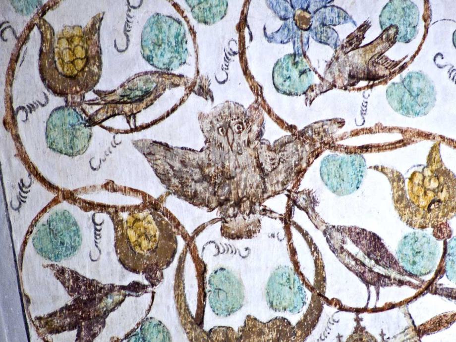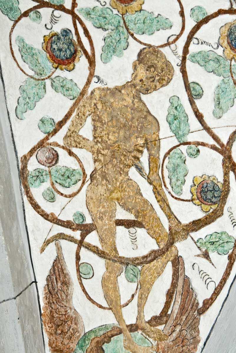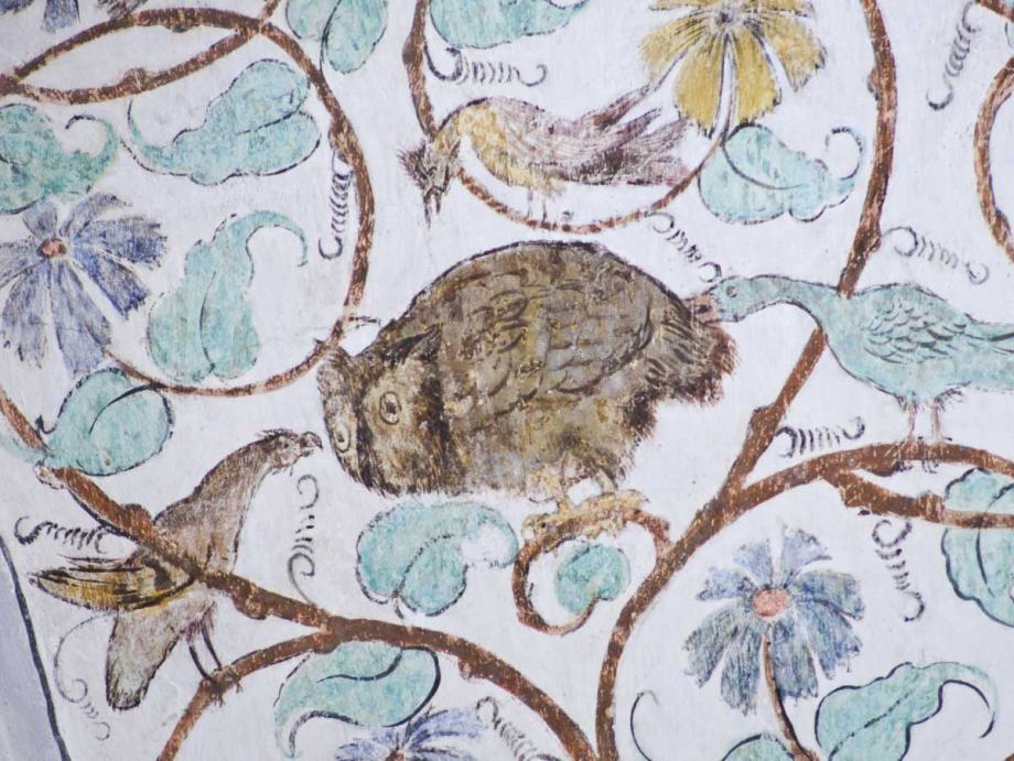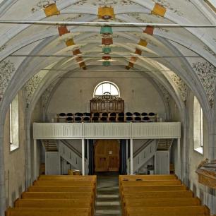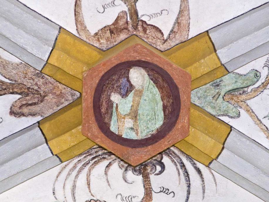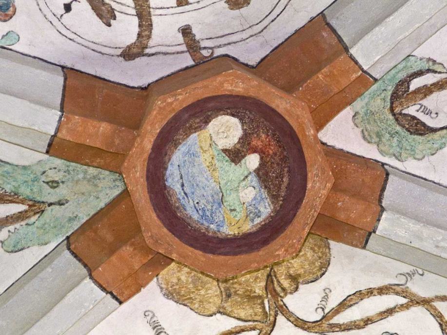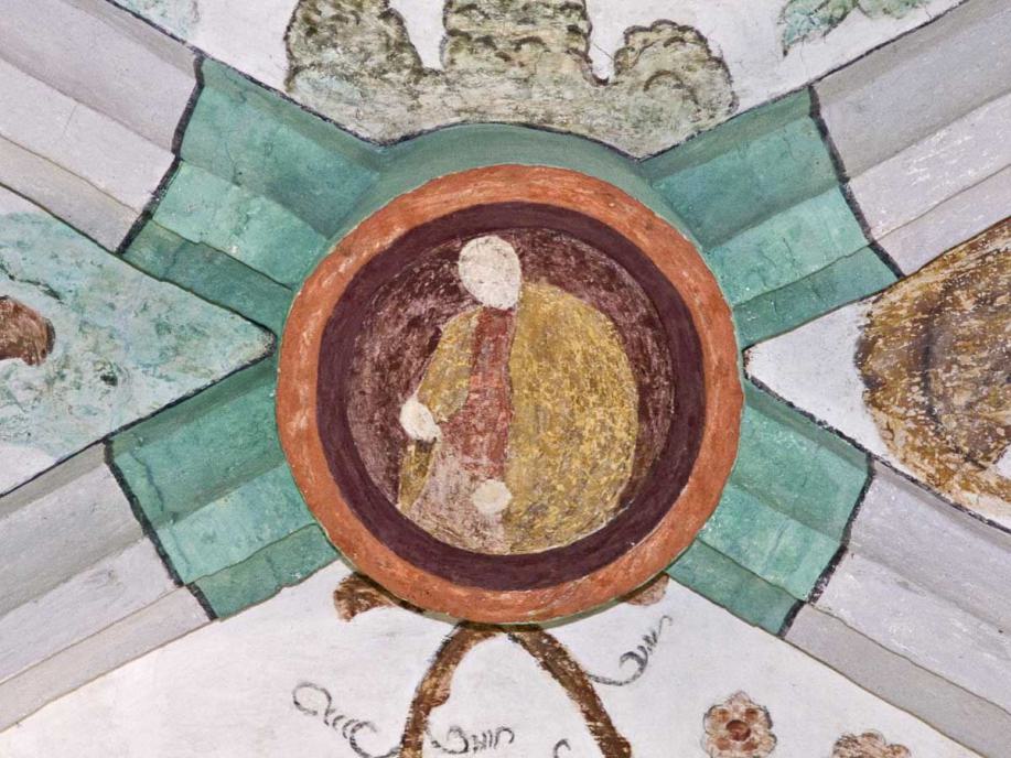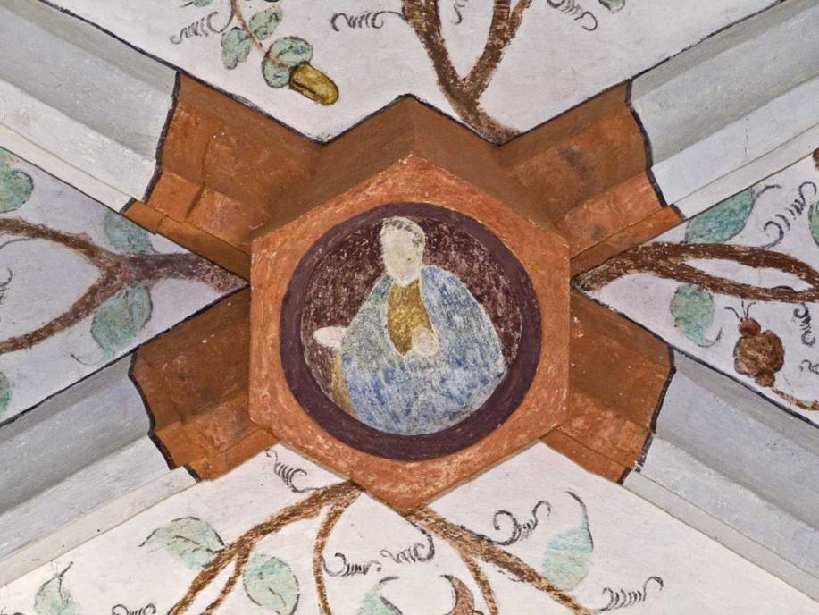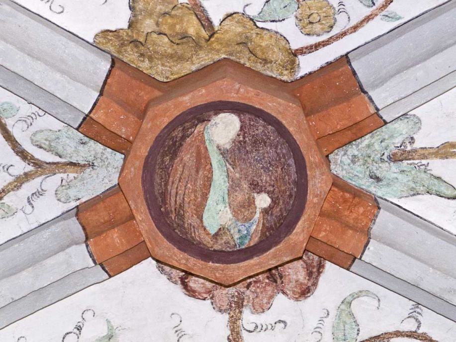 Die Bilder im Deckengewölbe wurden anlässlich der Renovation von 1934 freigelegt. Im Mittelfeld sind die Symbole der vier Evangelisten gemalt, auffallend sind die Darstellungen des Todes in den Zwickeln, in denen der Tod nicht als Gerippe dargestellt ist. Datiert sind sie mit 1518."