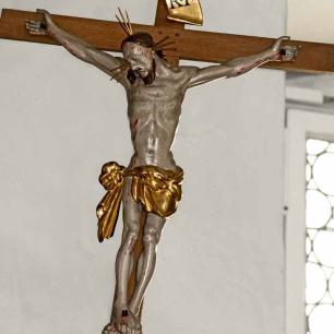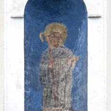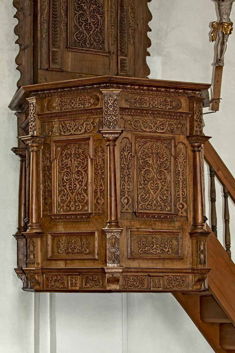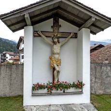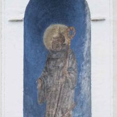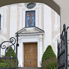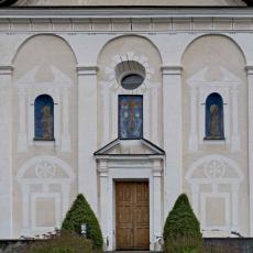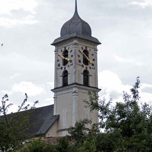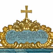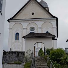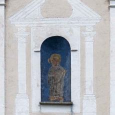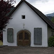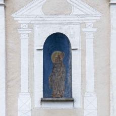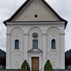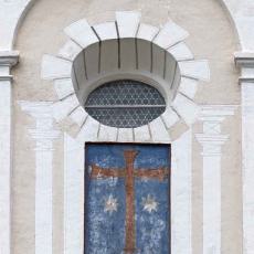 Aussen, über dem Eingang der Kiche steht die Inschrift: "In triennio totum hoc templum a communitate ex fundamento erectum est. Anno 1678" (In drei Jahren ist dieses Kirche durch die Gemeinde von Grund auf erstellt worden. Im Jahre 1678).