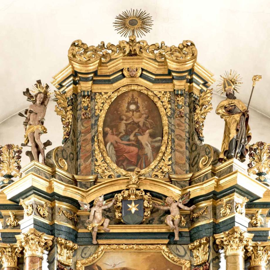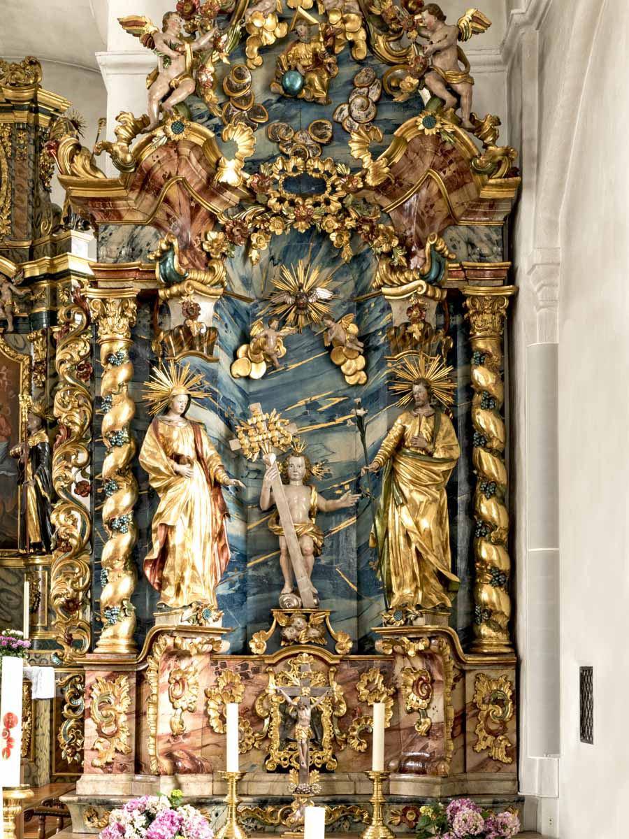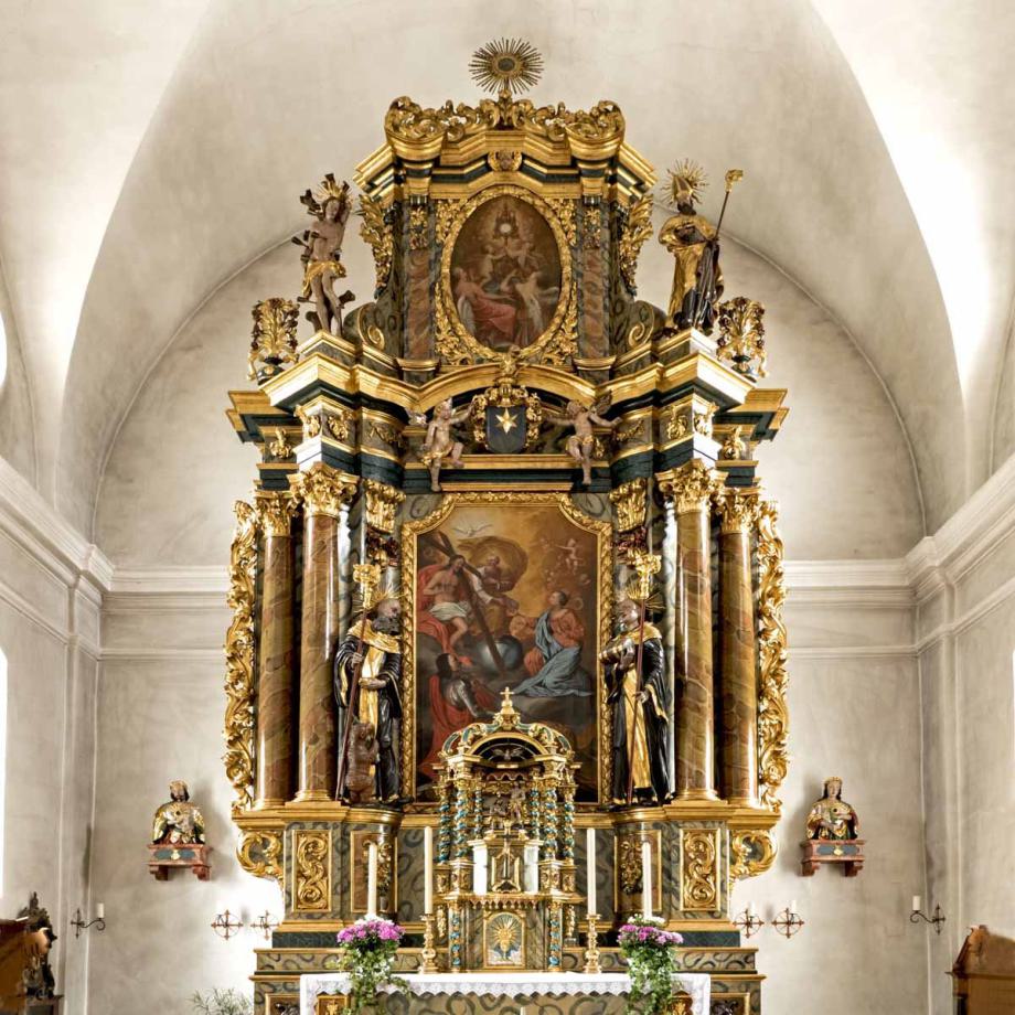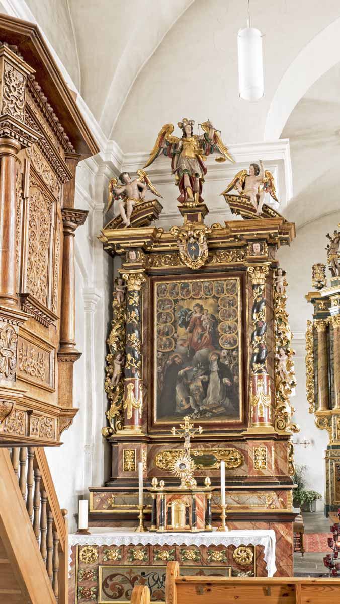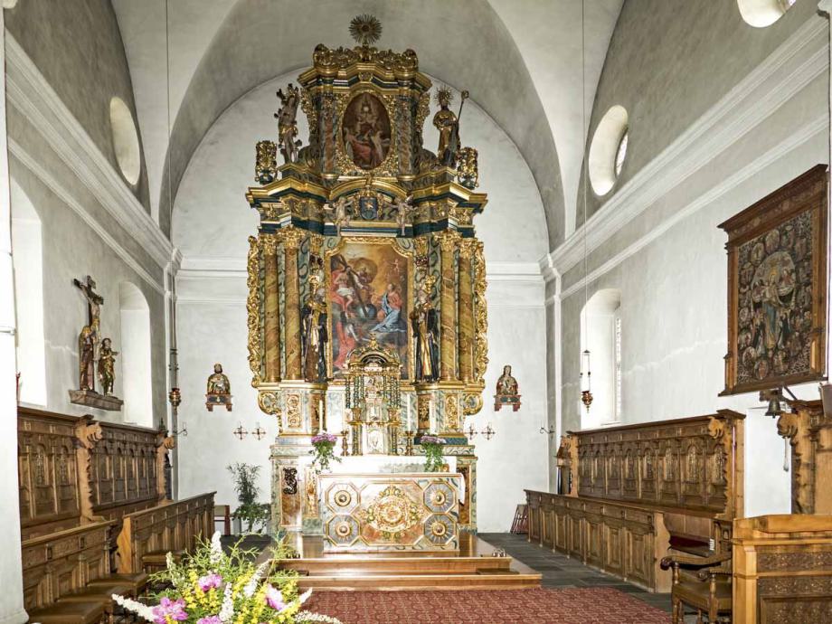 Am 17. Oktober 1677 weihte der Bischof von Chur die neue Kirche der Hl. Dreifaltigkeit, der Gottesmutter Maria und den Patronen Gallus (641) und Othmar (759) (im Hochaltar dargestellt).