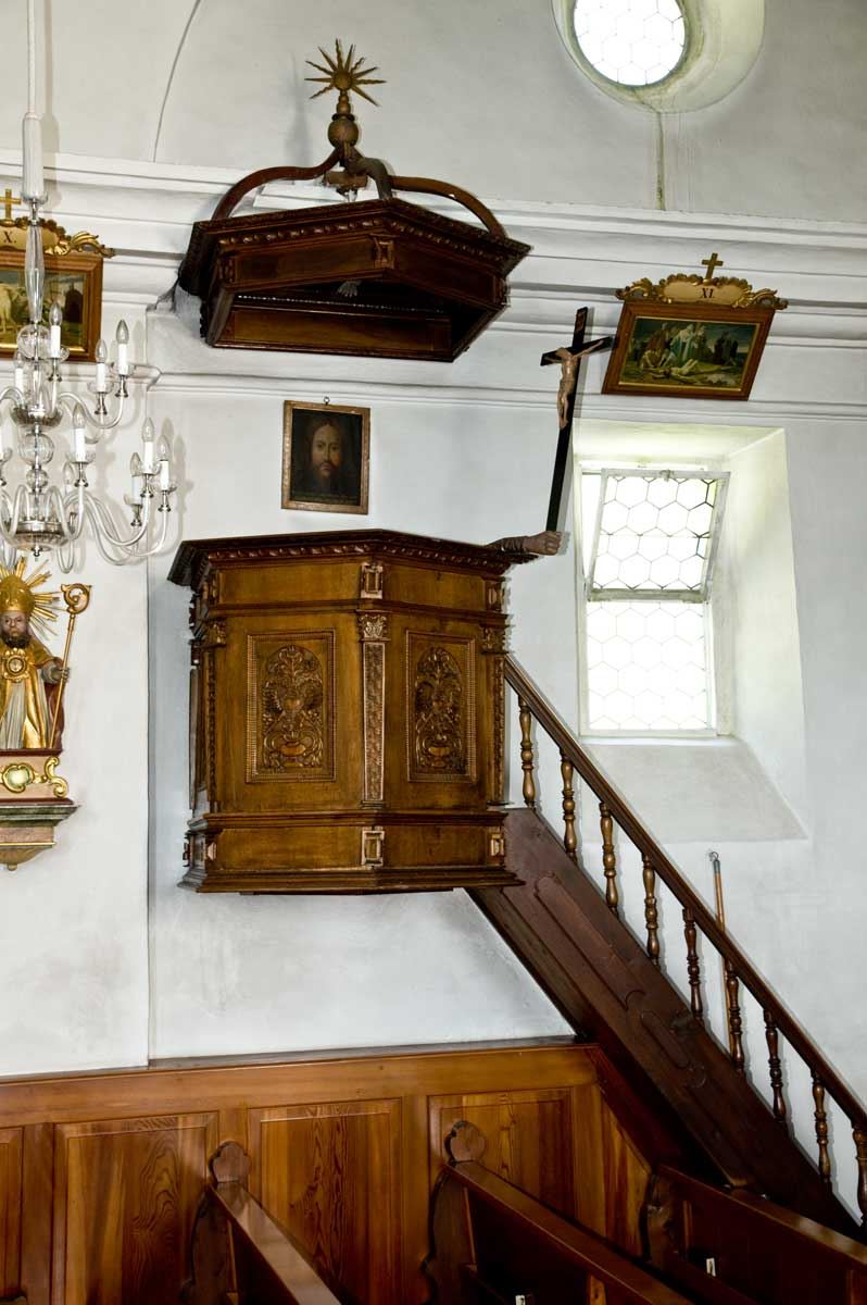 Seit 1964 steht die Kirche unter Bundesschutz. Bis 1972 waren die Zifferblätter am Turm nur aufgemalt. Dann hat man auf der Dorfseite eine richtige Uhr eingebaut."