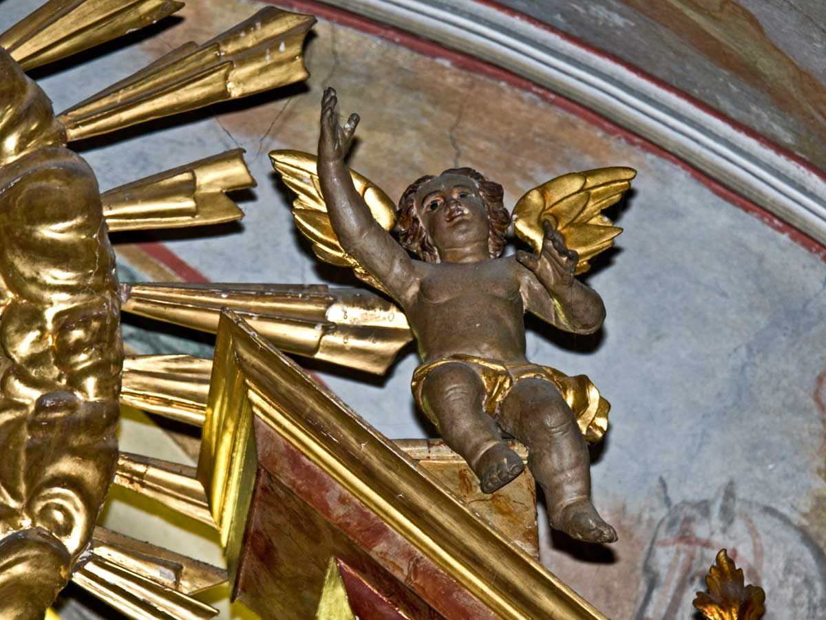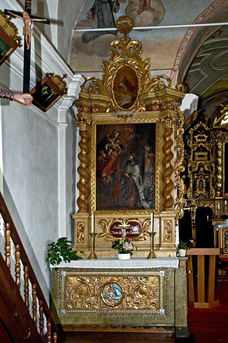 In der Kirche sind mehrere "Skapuliermadonnen" zu finden. Wikipedia erläutert dem Unkundigen was das ist.