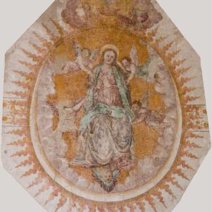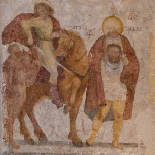 "Die ersten Gebäulichkeiten des Hospizes datieren vom Jahre 1374. Der berühmte Restaurator des Klosters Disentis, Abt Christian von Castelberg, rettete das Hospiz 1577 vor dem Zerfall. Er liess die einfache Bergkapelle mit herrlichen Fresken ausschmücken. Die Fresken im Chor der heutigen Kapelle, die die Heiligen Martin und Placidus, Sigisbert und Benedikt darstellen, und die darüberliegenden Wappen zeigen die Beziehungen zum Kloster Disentis.