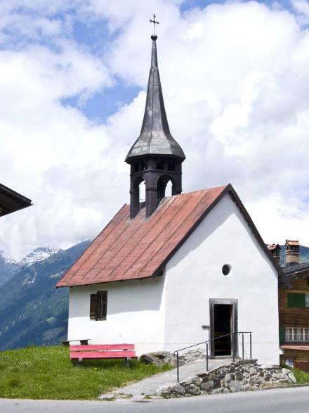 "Die Kapelle wurde vor 1668 erbaut. Die nach Norden gerichtete, anspruchslose einräumige Kapelle mit der trapezförmigen Leistendecke wird von einem Satteldach mit Dachreiter gekrönt.