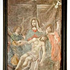 "Das Altarbild wurde 1668 von Nicolao Giuliani gemalt, doch die Kapelle soll älter sein. Das Bild zeigt die Begrüssung zwischen Maria und ihrer Base Elisabeth und im Hintergrund derjenigen von Josef und Zacharias. Das Bild an der Ostwand ist ein Beweinungsbild; der von Kreuz abgenommene Jesus liegt im Schoss seiner Mutter. Dieses ist nicht signiert, wird aber von Poeschel auch als mögliches Giuliani-Bild gewertet.