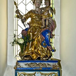 Beim schrecklichen Dorfbrand von 1740 brannte auch die Kirche aus. Das gotische Chorgewölbe hatte stand gehalten. Von der Kirchenausstattung konnte die romanische Muttergottes vom Hochaltar, die sich heute an der nördlichen Chorbogenwand befindet und zwei freistehende, signierte, barocke Leuchterengel gerettet werden.