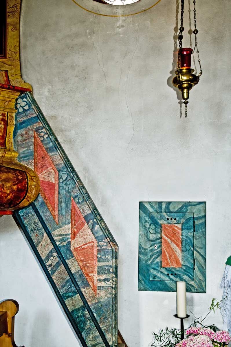 2.1 Innen: Taufstein, Kanzel