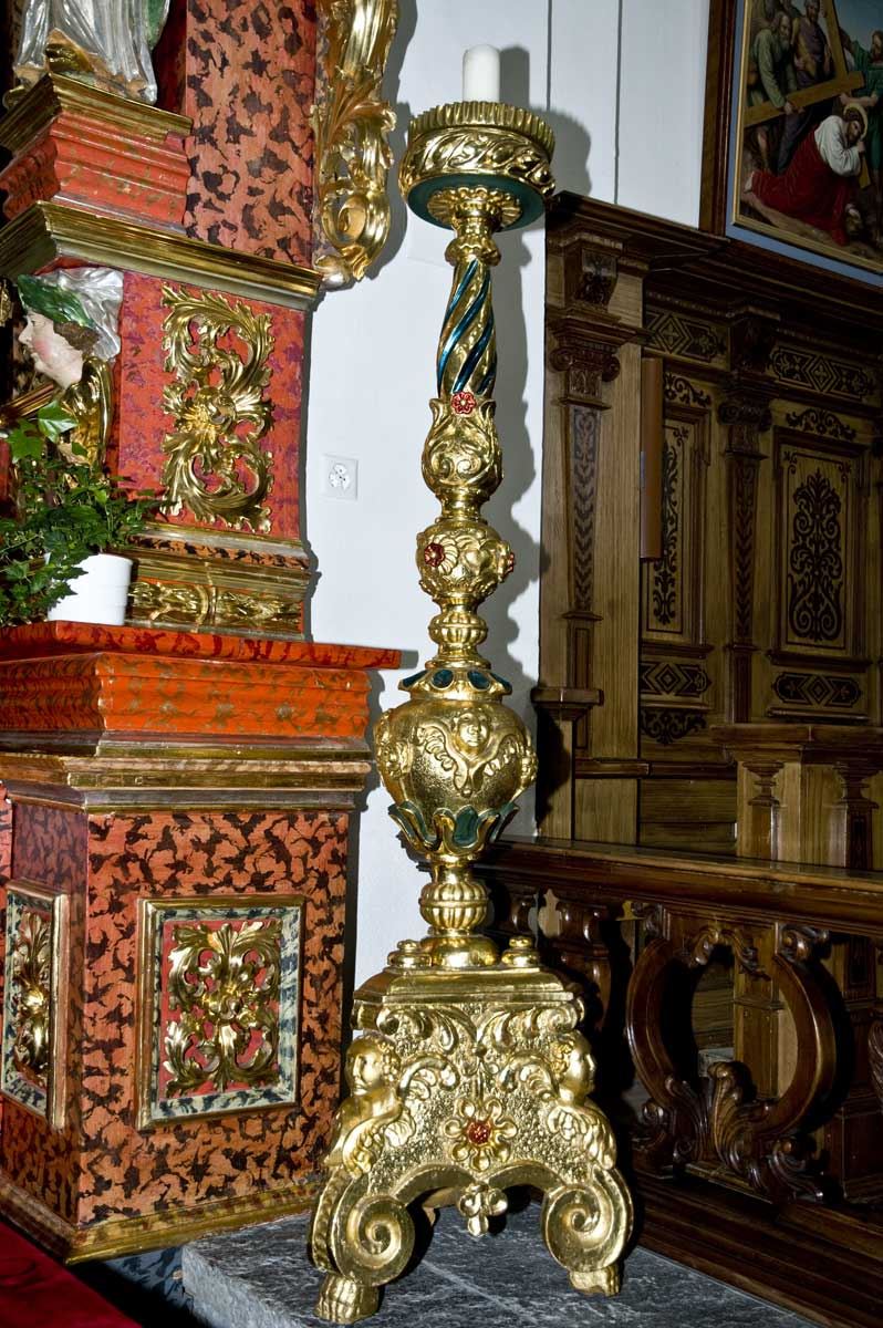 Die Pfarrkirche ist dem Hl. Vigilius von Trient geweiht. Patrozinium am 26. Juni, zufällig (Fügung ?) an dem Tag, an dem ich die Kirche fotografierte. Aus Anlaß des Patroziniums war seine Statue in der Kirche (neben dem linken Seitenaltar / vor dem Chor) aufgestellt.