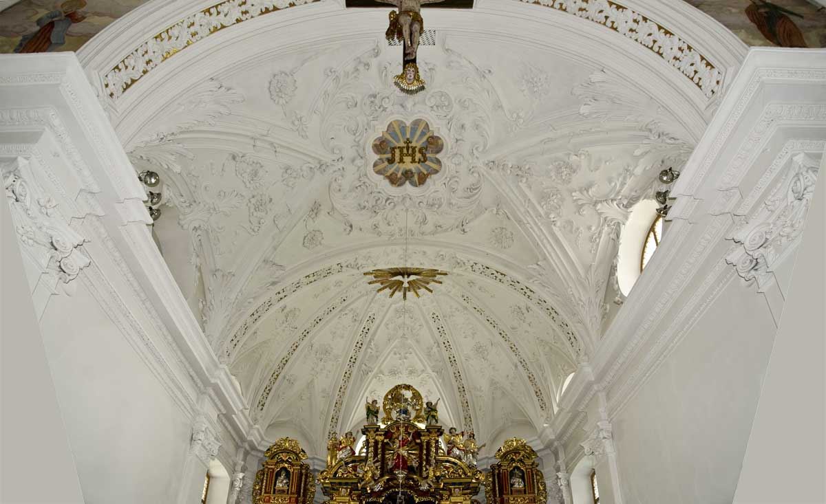 4 Chor mit Hochaltar, Stuckdecke, Chorgestühl, Reliquienschreine