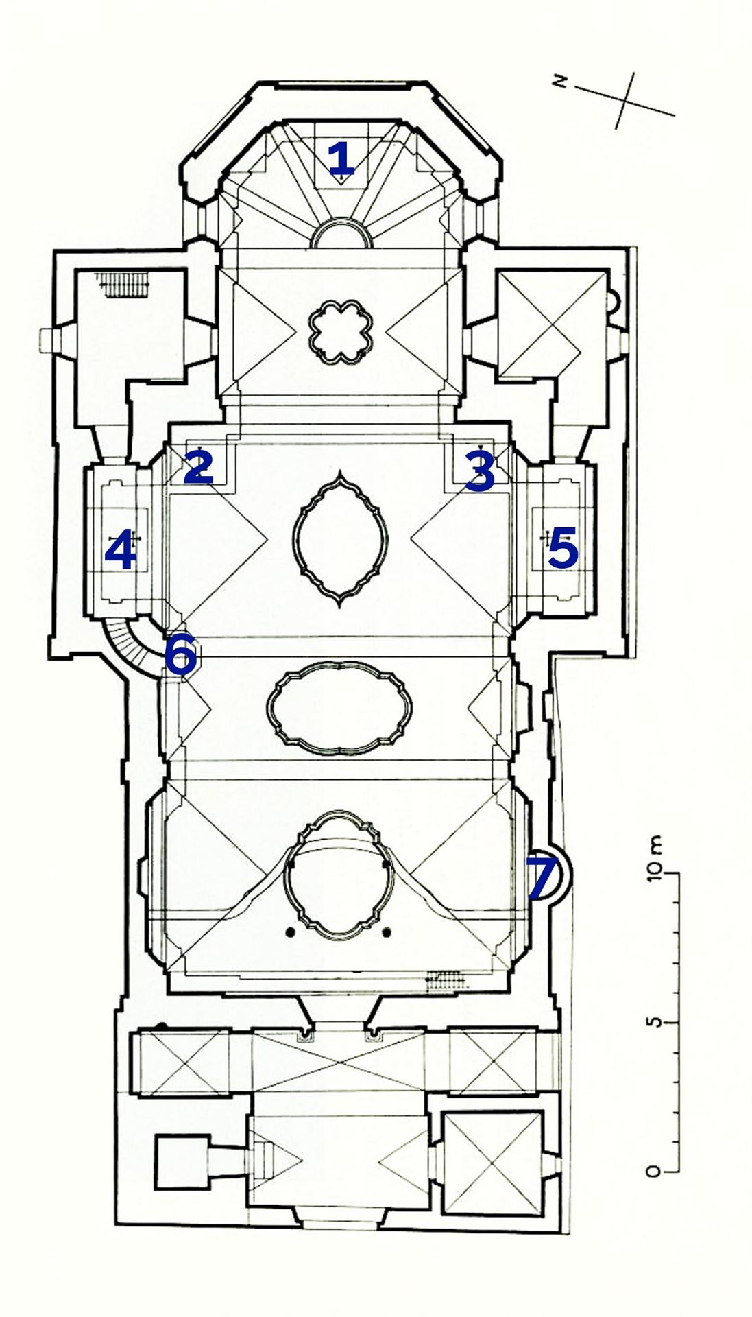 - 4 Chor mit Hochaltar, Stuckdecke, Chorgestühl, Reliquienschreine