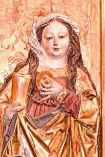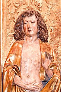 Maria mit Kind wurde durch eine neue Herz-Jesu-Figur ersetzt. Da diese in der Organisation ihrer Gewandfalten jedoch genau der originalen Figur folgt, wurde das ursprüngliche Erscheinungsbild des Altars auf den ersten Blick nur wenig gestört.