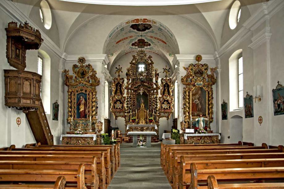Sogn Flurin, erstmals 1481 erwähnt, wird im Visitationsprotokoll von 1641 genauer beschrieben. Diese Kirche wurde um 1740 niedergelegt und durch einen barocken Neubau ersetzt (1744 geweiht). Der alte Turm blieb zunächst stehen, musste 1924 wegen Baufälligkeit auch erneuert werden.