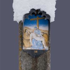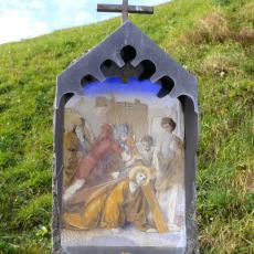 Am Sträßchen von Sumvitg nach Clavadi steht ein Kreuzweg mit 14 Stationen, den wir seit wir in der Surselva Urlaub machen und dann immer in St. Benedetg wohnen fast täglich sehen, an ihm vorbeifahren (zumindest an den Stationen 1 6).
