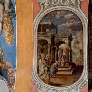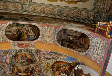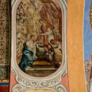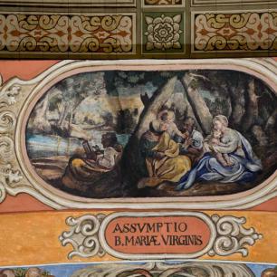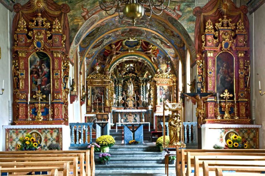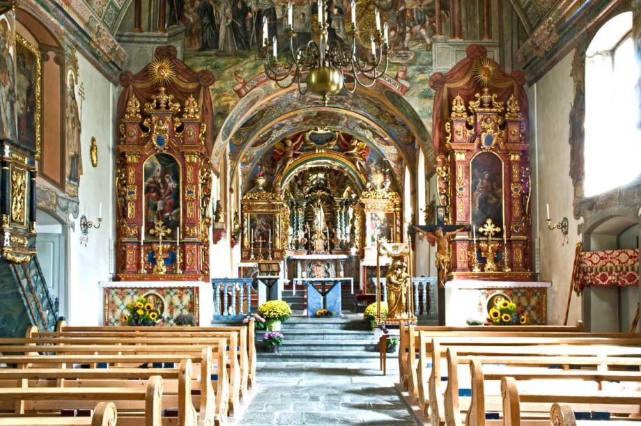 1687 bis 1690 wurde der Innenraum durch den Kirchenmaler Fridolin Eggert aus dem Kloster Disentis aufwändig ausgemalt; die Malereien gelten als sein Hauptwerk. Bemerkenswert ist das Bild im Chorhimmel, in dem durch das Zusammenfliessen der Milch Marias mit dem Blut ihres Sohnes in der Opferschale ihre Mitwirkung am Werk Christi symbolisiert wird."