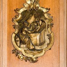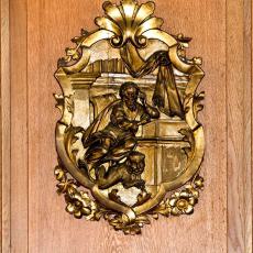 an der Brüstung der Empore waren ursprünglich an der alten Kanzel angebracht und wurden im Zuge der Renovierung 1970/71 versetzt.