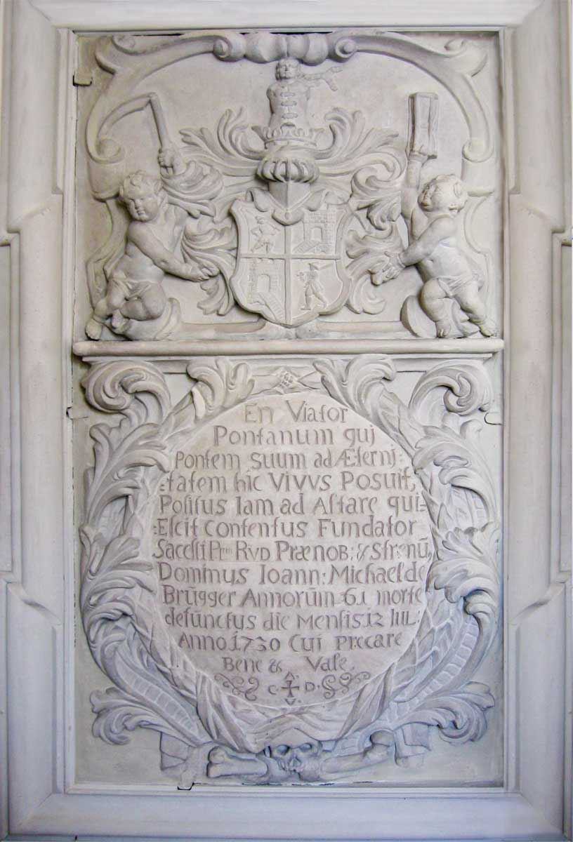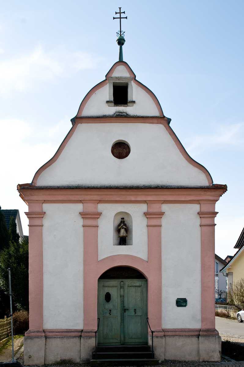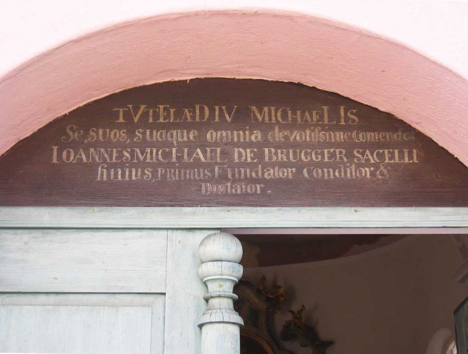"Gestiftet 1713 von Amtmann Joh. Michael von Brugger. Kaplanei bis 1831. Renoviert 1991. Grabmal des Stifters (+ 1730) im Innern."