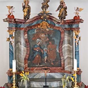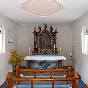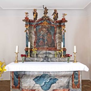 1730 wurde dann die heutige Kapelle mit ihrem schlichtem Baukörper errichtet. Die Glocke trägt das Datum 1654. Der Altar mit Darstellung der Hl. Familie stammt aus der Erbauungszeit der Kapelle."