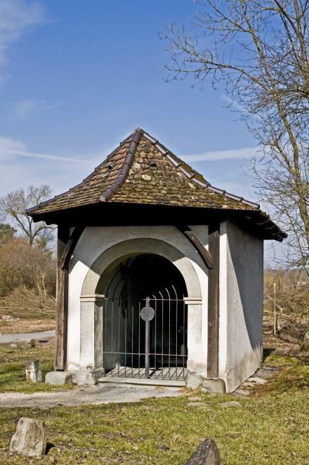 Frühbarocke, zweijochige Wegkapelle mit inschriftlich auf 1644 datiertem Sandsteinaltar, der die Passionsfrömmigkeit der Zeit bildlich umsetzt. Die Drachenkämpfer St. Michael und St. Georg auf der westlichen (=linken) Wand schützen den Inselzugang vor allem Bösen. Die trauernde Maria auf der östlichen Wand bezieht sich auf den ehemals dort hängenden Kruzifixus des 12. Jahrhunderts, nunmehr in der Mittelzeller Schatzkammer, ursprünglich wohl der Triumphkruzifixus in St. Peter und Paul in Niederzell. Die Kapelle ersetzte einen mittelalterlichen Bildstock, bei dem seit alters die ungetauften Kinder bestattet wurden. Von diesem Brauch leitet sich der ungewöhnliche Name dieser Kapelle her.
