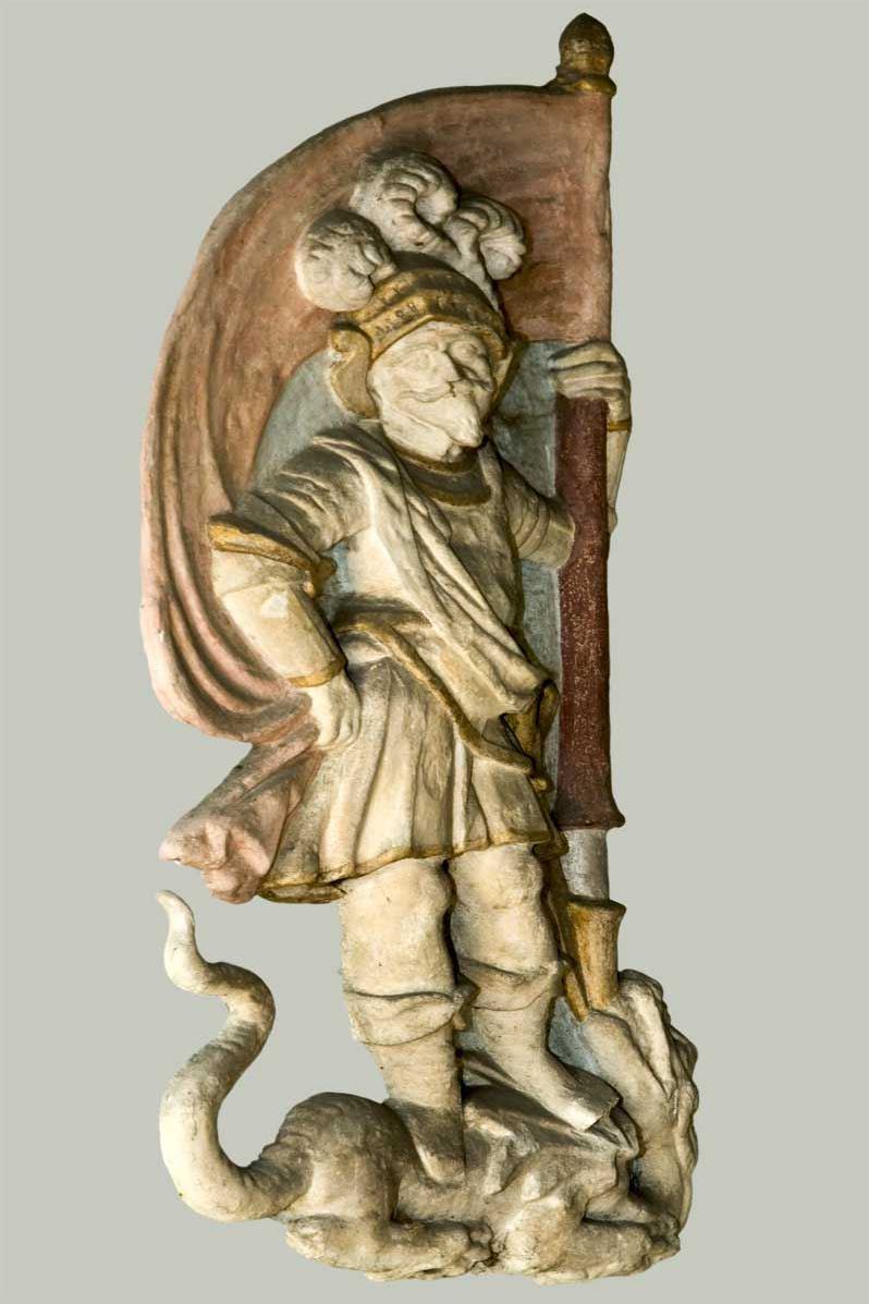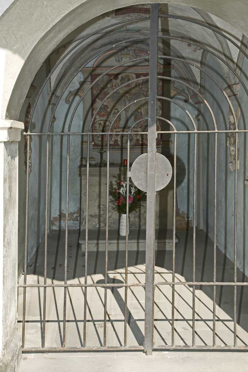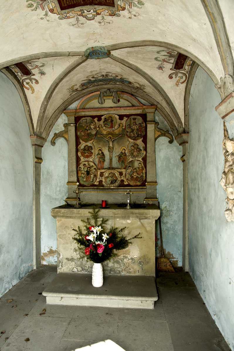 Korrektur: St. Michael befindet sich auf der rechten Wand der Kapelle (Ostwand), neben der trauernden Maria.