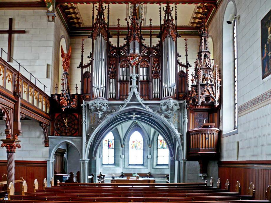 2.1 · Innen - Blick zum Chor, zur Orgel und Kanzel